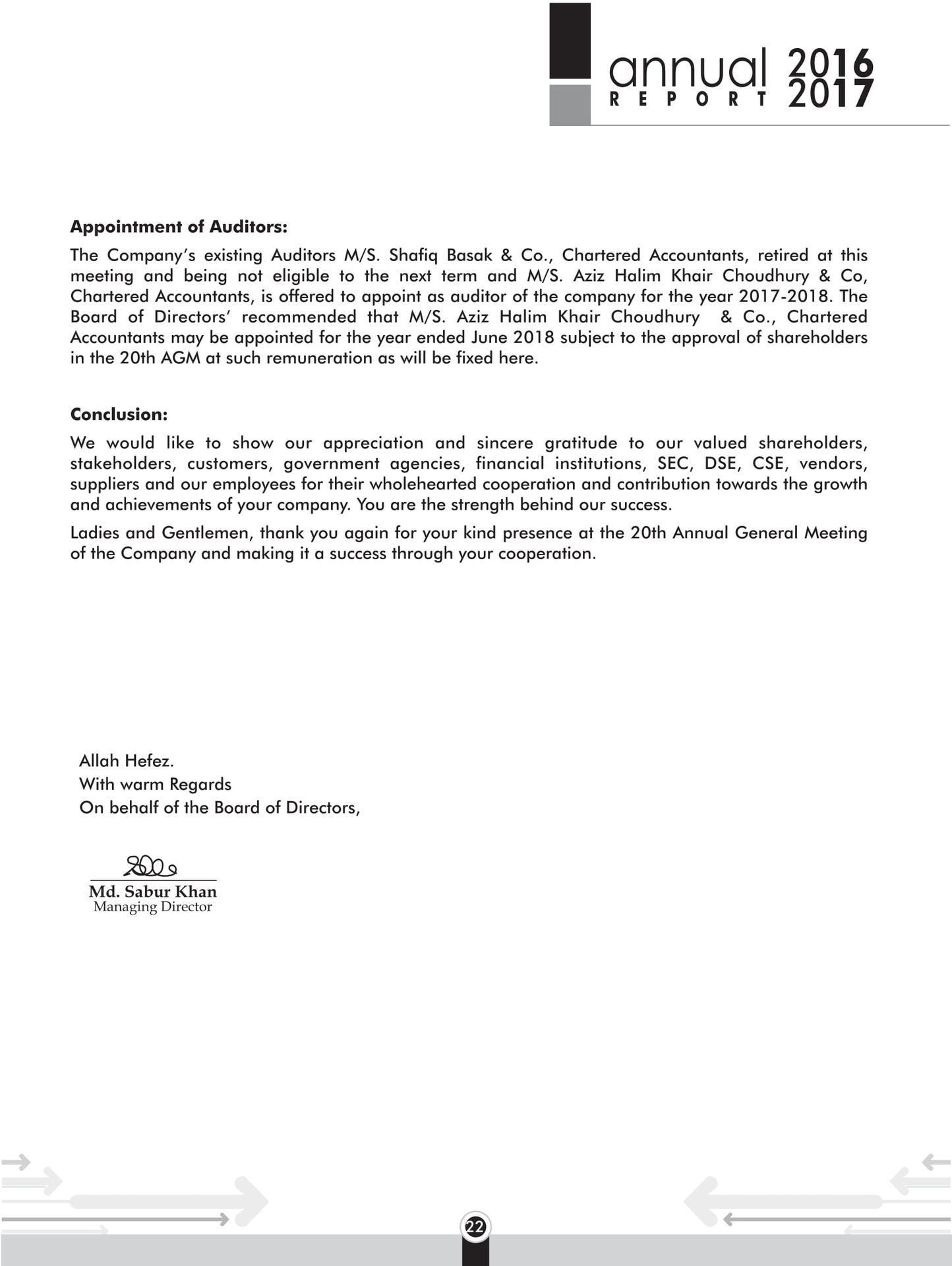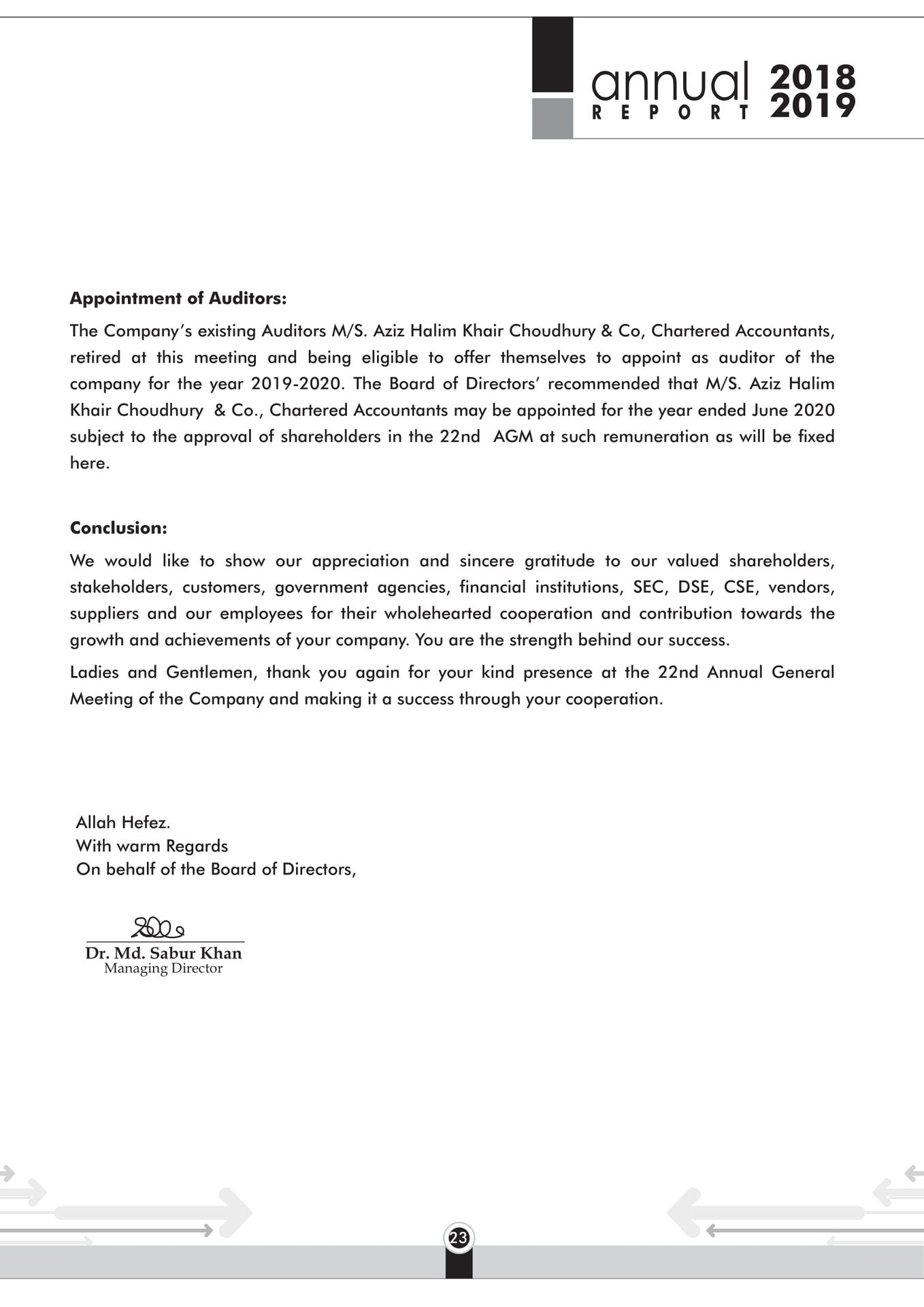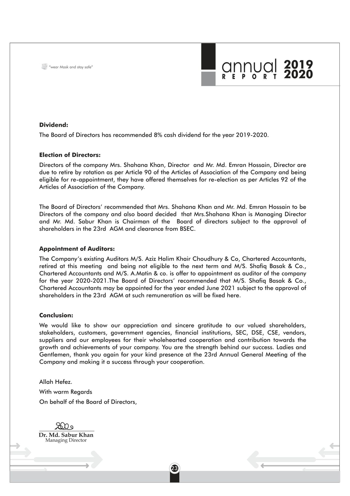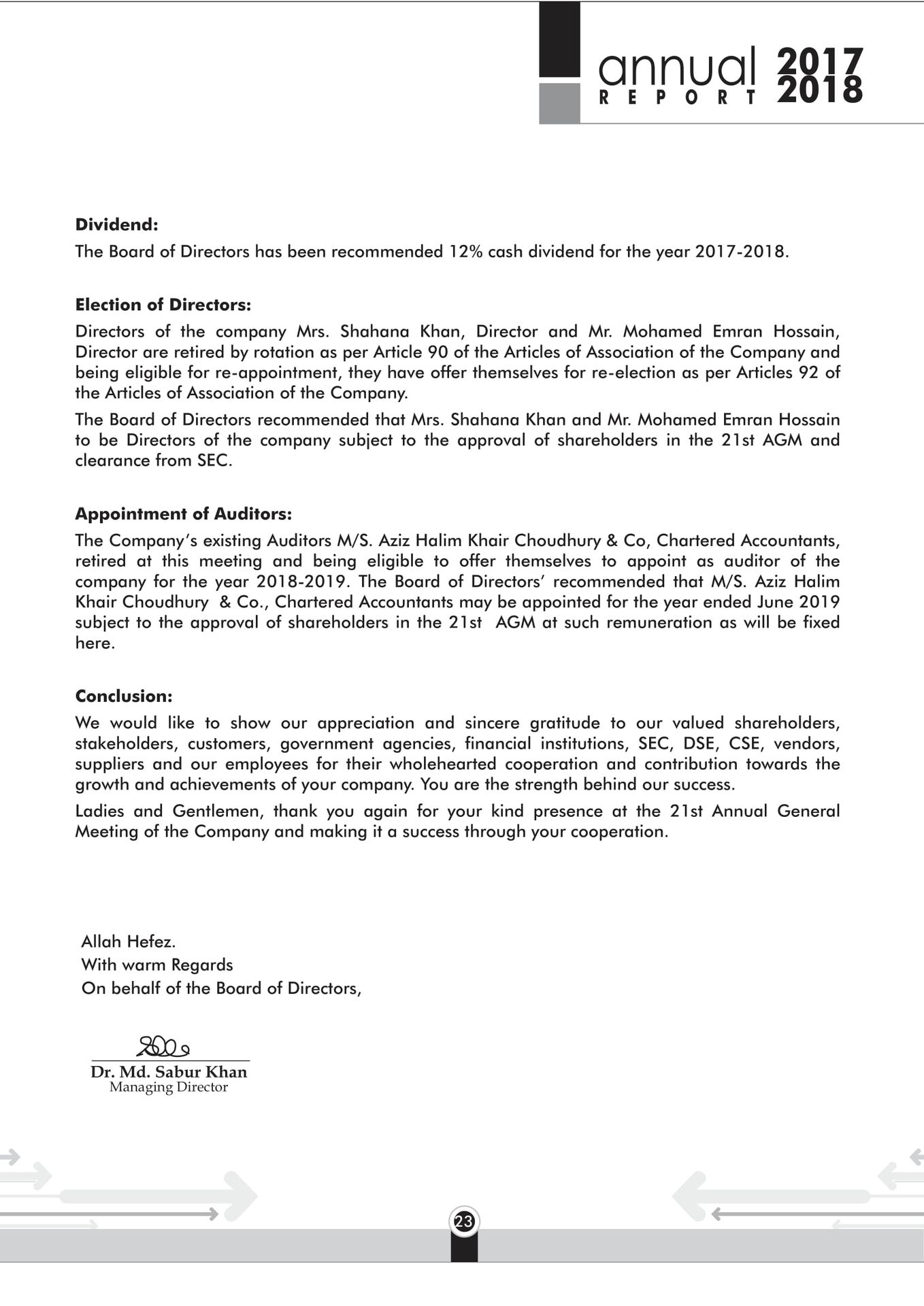Code of Conduct Chairman Managing Director Report