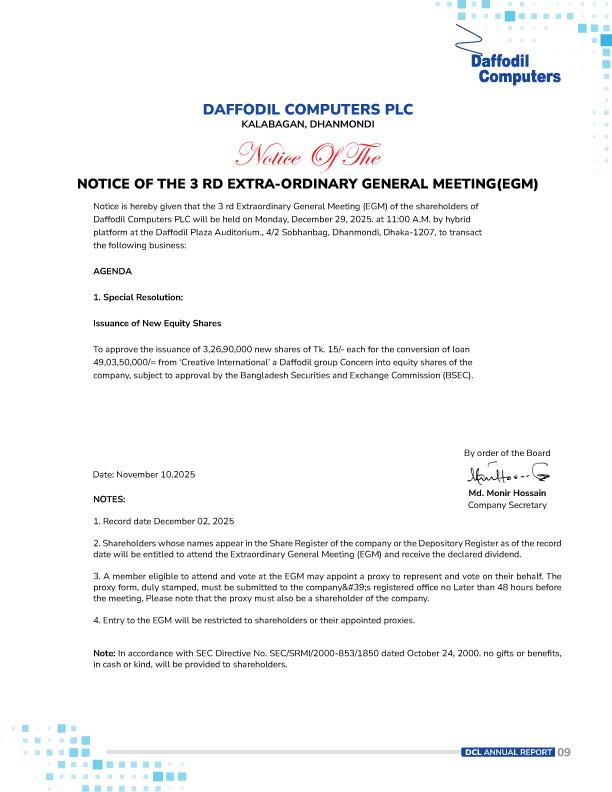 Notice Board of Daffodil Computers Ltd.